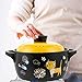 ★ 3-Quart Nordic Style Ceramic Casserole with black dish, white cartoon lid.