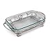 Sand-cast aluminum stand, buffed to a brilliant luster holds classic Pyrex 3 quart baking dish