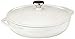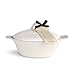 Casserole cast iron skillet in white with loop side handles for easy transport; oven safe to 400 degree Fahrenheit