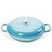 WIDE SURFACE FOR EVEN COOKING. This 3.6 quartz braiser enameled cast iron has a wide surface for even cooking and browning.