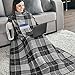FLEECE BLANKET WITH SLEEVES - The wearable blanket with front pocket will keep you warm and cozy all year long. With open back design for easy slip on use, the blanket with sleeves for women and men allows both hands free and mobile to grab and use laptop or cellphone while lounging on sofa or couch. The throw wrap will keep you warm and cozy at home, work, office. Super soft and plush, this sleeved throw makes a perfect holiday gift for wife, husband, young adults and old seniors.