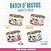 Batch 'O Besties Variety Pack (3oz Can, Pack of 12) Is our batch o’ best selling all-natural B.F.F. wet cat food cans featuring Wild-caught Skipjack Tuna in a delicious gravy!