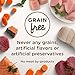 Grain-free, Gluten-free, & Carrageenan-free. No corn, wheat or soy. Free from any artificial colors & preservatives.