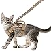 【Easy-to-wear and Adjustable】:This cat harness and leash easy to wear. Its adjustable straps achieve the maximum and the minimum adjustment within a certain range,ensuring your cats stay securely in this harness when walking outside, giving your cat a perfect snug fit while with some room for growth.(Tips: The harness should be snug enough for you to fit one finger between the straps and any part of your cat's body)