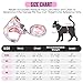 【CUTE & COMFORTABLE】 --- Made of lightweight and breathable fabric, the cat walking harness brings less stress to a reluctant cat. The non-stick fur lining won't cause skin problems, and the cute floral pattern on it makes your feline pal even more adorable. A small ring in the front of the kitten harness can attach a cat bell or a tag to add cute features.