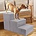 MULTIPLE STEP SIZES - This dog stair has 3 steps, 4 steps and 5 steps to choose. Our 3-step dog stairs are only suitable for sofa and low beds (no higher than 18inch). And 5-step dog stairs for high beds are more suitable (no higher than 27inch). If your bed is not too high or low which is medium height, please choose 4-step dog stairs (no higher than 23inch).