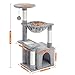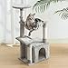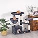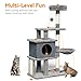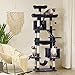 [Multifunctional cat play centre]: This multi-level cat tree is designed for cats to scratching, climbing, sleeping and exercising. Kittens can sharpen their claws on scratching posts, lying around in well-padded cat perches, playing with interactive cat toy and hiding in the cat condos. Every cat has their own favorite activity on our scratching tree.