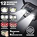 【12 modes and motion sensor】HRSEDZ rechargeable headlamp can switch between main strong light, main low light, side strong light, side weak light, red light and SOS red strobe, which is suitable for running, camping, cycling, fishing and climbing. These modes can be switched with a wave of the hand in front because there are motion sensors built in. The motion sensor is great for the times that your hands are greasy or very dirty wet.