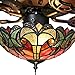 GLASS SHADE: Traditional elegance and functionality embody this fixture. It features uniquely colored artisan hand-cut glass and includes 5 reversible blades and 2 pull chains.
