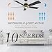 10 Speeds with Quiet DC Motor: The black ceiling fan is equipped with a quiet DC motor that offers up to 10 wind speeds to control, brings strong airflow with a maximum of 4500 CFM, and only produces 58Db noise to create a quiet and cool environment to you. The ceiling fan with light provides a reversible to let you cool in summer and warm in winter.