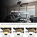 [LED DIMMABLE]: 3 COLOR TEMPERATURE: The WiFi ceiling fan with LED 16W 1300 lumens bright light, 3 color temperature Warm Light 2700K, Natural Light 3500K, and Day Light 4000K. The lighting can be dimmed 1~100% and meet your need with a different scenario you want; This ceiling fan with lights can group with other smart devices only touch on the phone app or voice command.