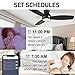 【Timer Function & Schedule Function】 This smart ceiling fan can be set to countdown for turning it off automatically after 1/2/3/4/5/6/7/8 hours. In addition, you can use the schedule function to make your ceiling fan work according to the set time and status. For example, the living room ceiling fan can be set to: Fan: on. yellow light: on. white light: off. time: 17:00. repeat: Everyday. " You can control multiple ceiling fans at once, or set multiple schedules for a single fan.