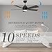 QUIET MOTOR & ENERGY SAVING: The whisper-quiet 10-speed DC motor makes this black and gold ceiling fan more energy-efficient than traditional AC motors. Plus, the reversible motor allows you to switch this smart ceiling fan between downdraft and updraft modes by remote or App, making it perfect for year-round use.
