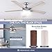 【100% SATISFACTION GUARANTEE】52inch smart ceiling fan and come with standard and angled mounting hardware for quick and easy installation, 1 extension down-rod included (6 in. for Angled≤10°). ETL Listed with limited lifetime motor warranty.