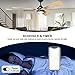 5 Ways to Control: This ceiling fan with lights and the remote controller, you will not lost control to the indoor and outdoor ceiling fan even when the WiFi signal lost ; Control you low profile ceiling fan and DIY the fan setting from any distance via the mobile phone app; Also, this smart ceiling fan can work with Alexa Siri &Google Assistant. "Alexa, set the black ceiling fan in bedroom to speed 8, set yellow light to 78%, set white light to 56%."