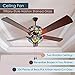 ✅[Dimensions]: This ceiling fans indoor with light come with two down rods: 5 inch and 8 inch.Dimensions is 52 x 52 x 15 Inch or 52 x 52 x 18 Inch depend on which rod you choose.