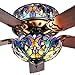 GLASS SHADE: Traditional elegance and functionality embody this fixture. It features uniquely colored artisan hand-cut glass and includes 5 reversible blades and 2 pull chains.