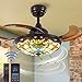 🏠【DIMENSIONS & WIDE APPLICATION】: Tiffany ceiling fan retractable blades extend diameter: 36"/91cm. Diameter 16"/40cm when blades folded. Total Height: 16.9 inches with 5" short rod. Tiffany ceiling fan is recommended for living room, dining room, kitchen, bedroom, restaurant, hallway, foyer, etc.