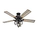 RUSTIC CEILING FAN: The Starklake 52-inch ceiling fan with a natural iron finish by Hunter features an industrial farmhouse style complimenting rustic indoor and outdoor spaces beautifully with 3 caged LED Edison bulbs that offer brighter light output while lowering energy consumption
