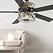 VERSATILE LIGHTING: A dramatic ceiling fan chandelier fixture for your bedroom, family room, living room, sun room or porch. Over 78 clear faceted K-9 glass crystals; Antique bronze metal finish on motor housing and shade.