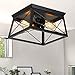 2023 Update Farmhouse Flush Mount Ceiling Light - Industrial vintage metal-framed black flush mount ceiling light fixture (Length:11.8 inch, Width: 11.8 inch, Height: 5.9 inch) featured a clean line geometric shape shade. 2-Lights flush mount ceiling light used crafted and durable metal frame with black metal finish to brings you a country, antique and traditional feeling. Square shape with iron cage design to add a retro, artistic and charming look. Rustic Ceiling Lighting Fixture can creat a cozy, nature, love living environment.