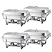This chafing dishes is half-sized, 4 quart chafer buffet serving set perfect for holding appetizers or portions of food for a small party or family meal. This food warmer has elegant gold accents on the handles. This sterno buffet kit serves as versatile buffet trays.