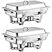 INCLUDES 2 OVEN-SAFE SERVING PANS: Serve a main dish and large side simultaneously in the two 2.5 quart-sized stainless steel chafing pans. Each pan has a transparent domed lid to keep moisture in while serving. Each lid has a spoon slot for easy serving.