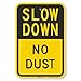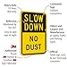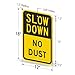 DURABLE ALUMINUM: 'Slow Down No Dust' signs are made of 63 mil thick heavy-duty rustproof reflective aluminum that easily lasts 10 years outside and meets DOT road and traffic requirements.