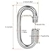Stainless heavy duty locking carabiner, NOTE SIZE(Approx),M4 : 1.5"(38mm) in length, 0.16"(4mm) in thickness, 1.2"(29mm) in inside height. Openning Mouth is 0.18"(4.5mm) when unscrewed. Weight 13g/ 0.5oz/pcs.