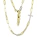 Paperclip necklace with rectangular calendered cross chain, crafted in 18K yellow gold plated sterling silver, lobster claw clasp, hypoallergenic and nickel and lead free.