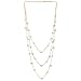 Gold White Statement Necklace Two-Strand Long Chains with Synthetic Pearl Beads, Elegant, Dress