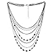 Black Silver Waterfall Multi-Strand Long Layered Chains Statement Collar Necklace with Rhinestones
