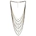 Gold Statement Necklace Waterfall Multi-Strand Curb Link Rolo Chains, Punk Rock Cool, Light Weight