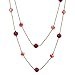 Gold Red Statement Necklace Two-Strand Long Chains with Red Crystal Beads Charms, Fashionable, Dress