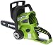 Cordless chainsaw comes with low kick back 12-inch bar and chain for construction and outdoor cutting applications
