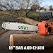 [POWERFUL]: 600 W motor and 10-inch bar plus chain cuts cleanly through tree trunks, limbs, logs, brush plus branches up to 9.5-inches thick
