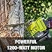 [POWERFUL]: 1200 W motor and 16-inch bar + chain cuts cleanly through trunks, limbs, logs and branches up to 15.5-inches wide.