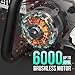 Highly efficient 40V brushless motor provides more torque, quiet operation, and longer life
