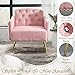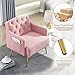 【UNIQUE APPEARANCE】 The tufted backrest and pattern on the armrest makes this chair very elegant. What's more, the classical pattern element and rose golden metal trim give this velvet chair a more chic style, making your living room more lively and vibrant.