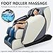 Zero Gravity: Massage chair has zero gravity function, press the "zero gravity" button, after fully supine, when the feet higher than the heart, it can reduce the body's influence on gravity, reduce the burden of the heart, enhance the massage effect. The footstool is retractable and suitable for people of different heights. There are also massage rollers on the feet to provide deep massage and relieve foot tension.