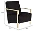 This accent chair features a black upholstry and a brass finish