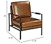 HANDSOMELY CRAFTED: Sit back on high-resiliency foam cushions wrapped in faux leather with upholstery-wrapped padded armrests; supported by an exposed metal frame in an antique brass finish