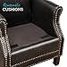 【DURABLE CONSTRUCTION】 This frame of the arm chair consists of high-quality solid wood and plywood, black solid wood legs offer an attractive look and durable structure which greatly enhances your seating experience. Generously upholstered club chair with gold-toned nail head trims, soft faux leather fabric and detailed stitching create a soft, stunning elegant look.