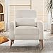 【Sturdy Construction】 This cream accent chair is made of solid wood frame and soft foam, the rubber wood legs are strong and stable, no rusting and peeling paint, and can carry up to 220 lbs. The chair legs are padded to protect your floor from scratches.