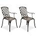 [BUILT-TO-LAST CAST ALUMINUM] The cast aluminum all-weather patio dining chairs retains its elegant appearance even after years of age. Our outdoor dining chairs have been treated with a surface powder coating process, which is rust-resistant, weather-resistant, fade-resistant, and chip-resistant. The aluminum patio chairs features an oil-rubbed bronze finish for a timeless look that is designed to withstand the elements year-round.