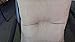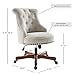 Button tufted back, in a beige colored fabric that’s accented with antique bronze nail-heads.
