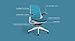 Ergonomic chair – this stool height model includes adjustable seat depth, fully adjustable arms, adjustable lumbar, pneumatic seat height adjustment, recline tension adjustment, flexing back with mesh upholstery and upholstered seat, black base and frame finish