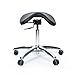 SADDLE SEAT SHAPE. Saddle seat shape incorporates a “waterfall effect” allowing the legs to hang naturally from the stool while sitting, thus reducing pressure on the backs of the thighs, for greater comfort and improved circulation to the lower legs.
