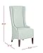 The seafoam green upholstery and cherry mahogany finish of this dining chair will create a perfect accent to your home