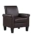 [COST-EFFECTIVE CHAIR]: Our budget-friendly armchair is proudly made with a manufactured wood frame that supports up to 300lbs/136kg. It founded on four solid pine wood legs and features a foam fill, and faux leather upholstery, rendering it a piece of distinctive accent furniture for your room.